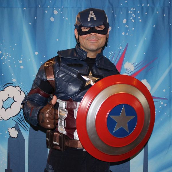 Captain USA always has the best time teaching kids how to be good heroes, how to stay fit and helps them learn the names of all the superheroes!
